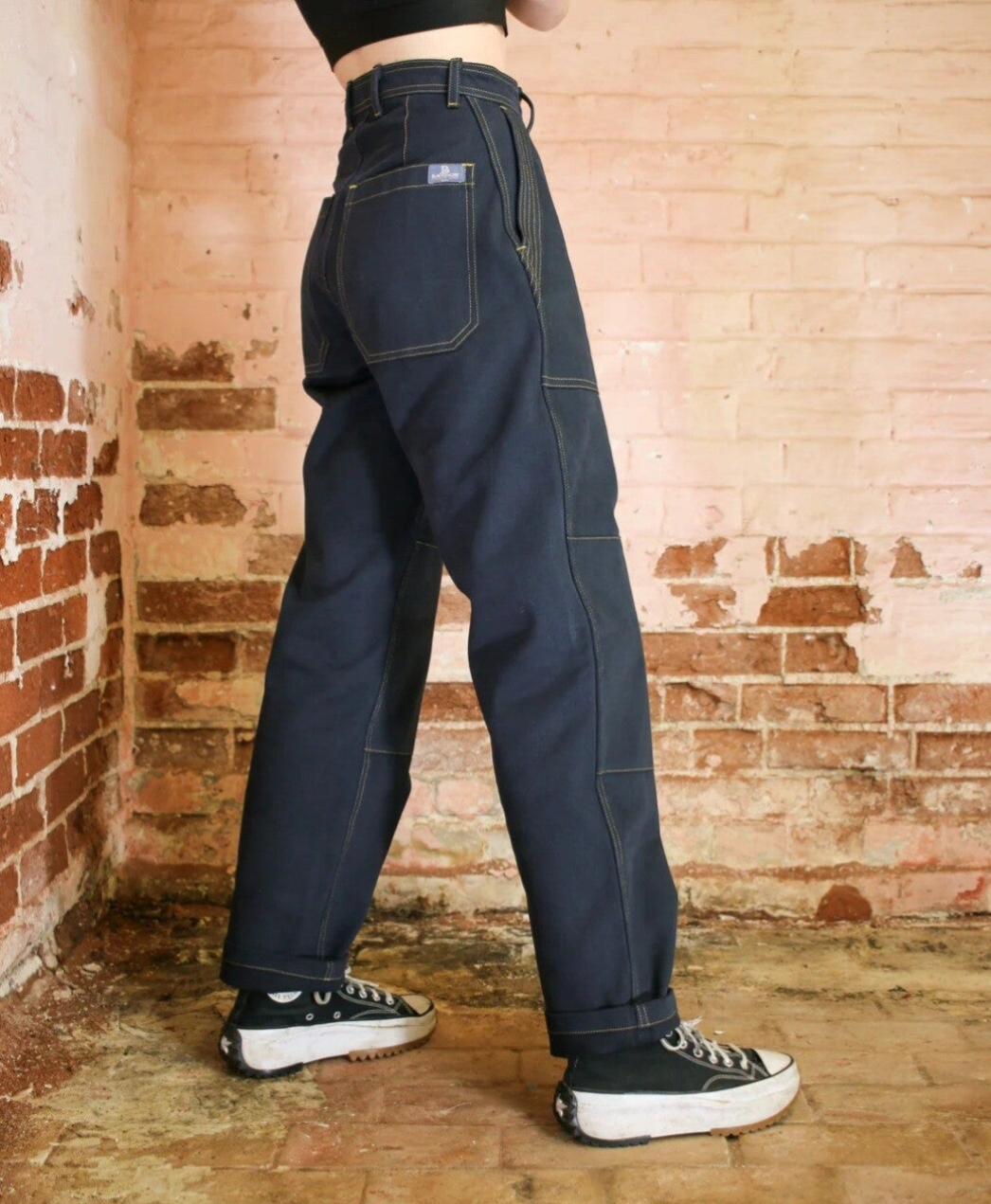 Denim Mid-weight 8oz 100% cotton. Heavy 14oz 100% cotton for the more industrial weight .